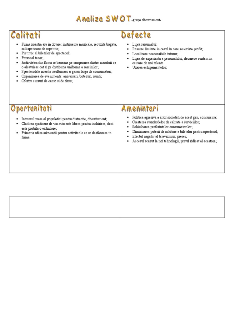 Organizare Evenimente Analiza Swot